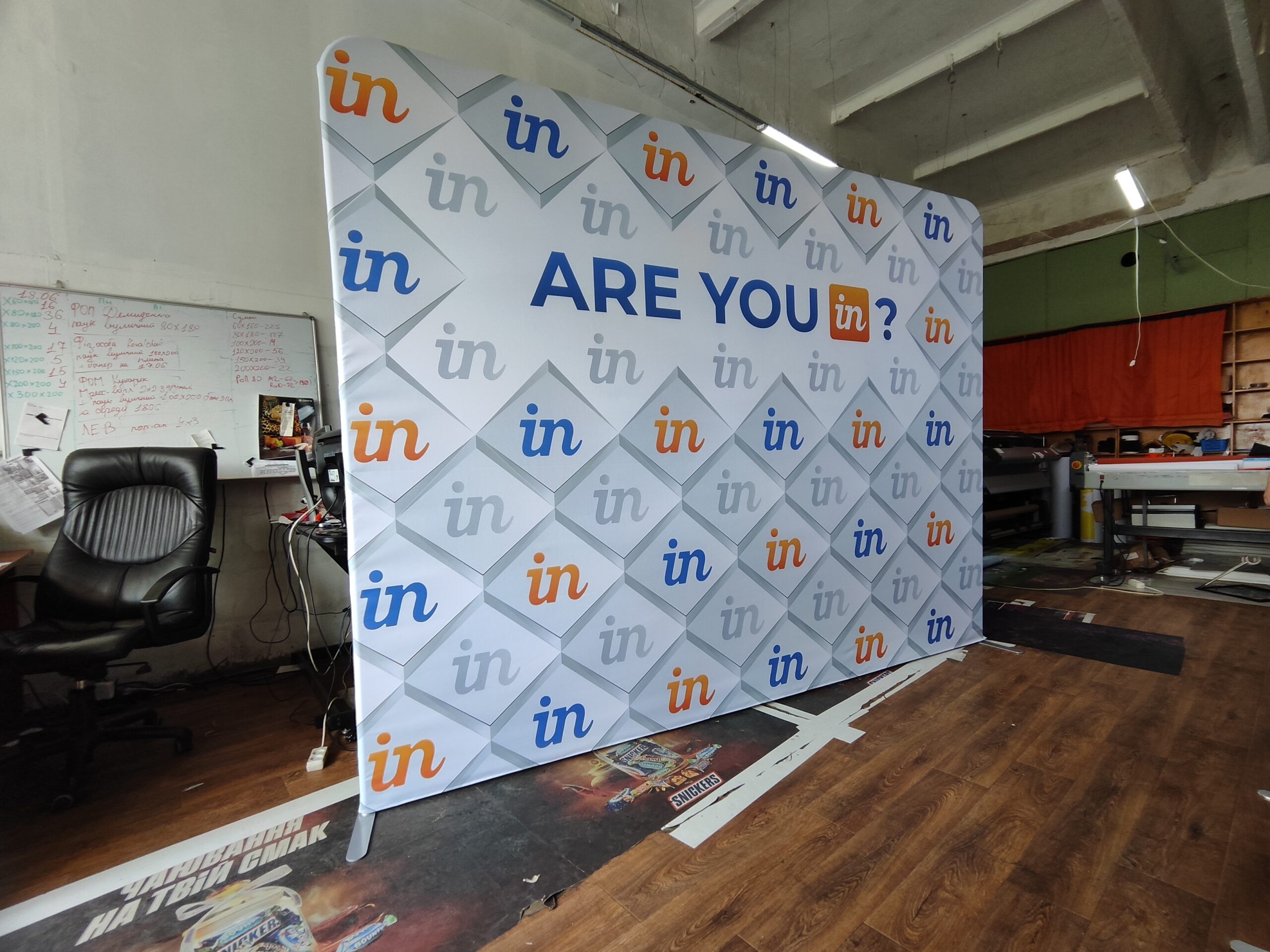 - Багатофункціональність: Ідеальний для виставок, конференцій, презентацій, промо-акцій, фотозон та будь-яких інших заходів, де потрібно створити ефектний рекламний фон, що привертатиме увагу.